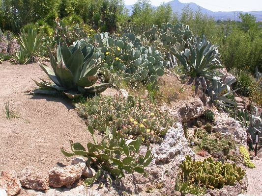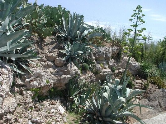 The plants come from private collections, seeds collected in nature (Mexico) and partly propagated at the Botanical Garden. They are not irrigated or fertilized, they do not undergo transplants or pesticide treatments, and they are not protected during the winter; the only cure they receive is the manual elimination of unwanted spontaneous herbaceous plants. This practice, necessary to guarantee the area an "arid aspect", is imperative for their survival, or they could not compete with fast-growing herbs or shrubs.