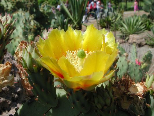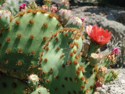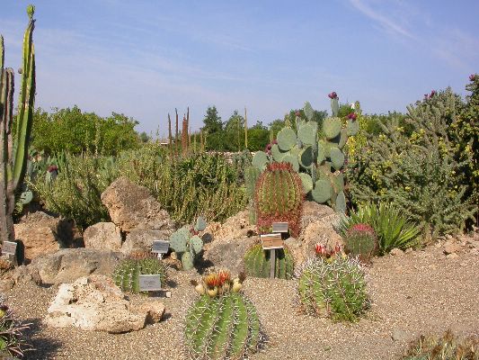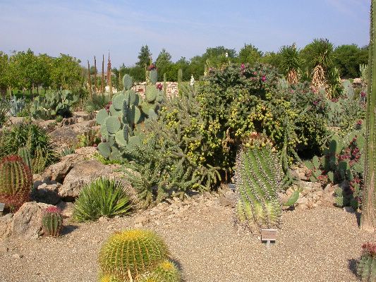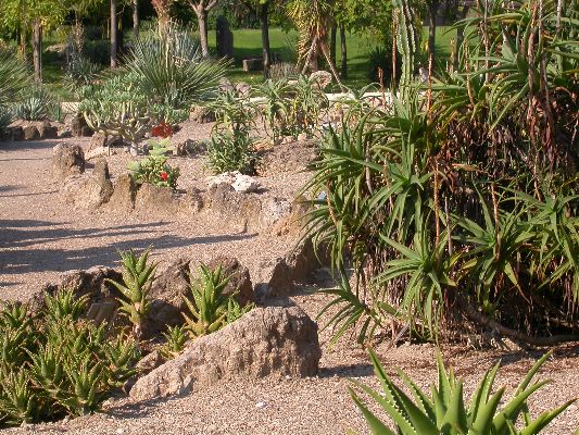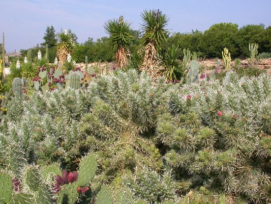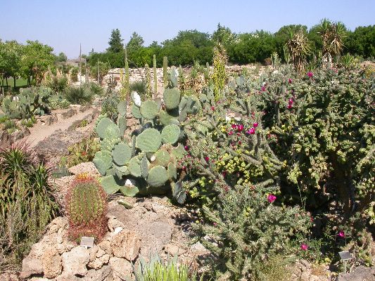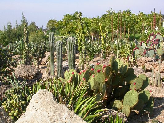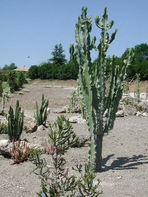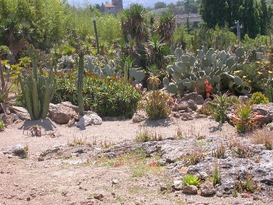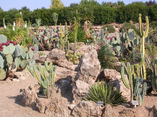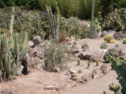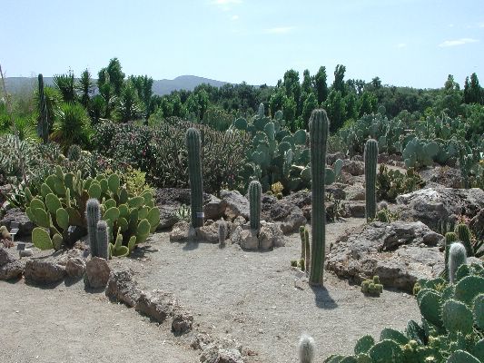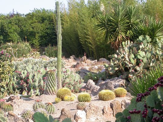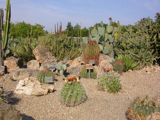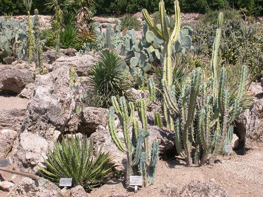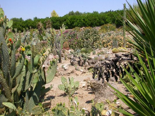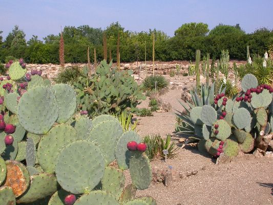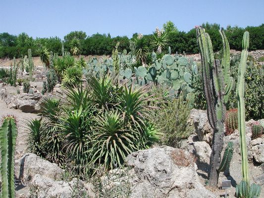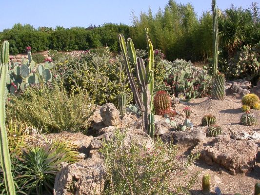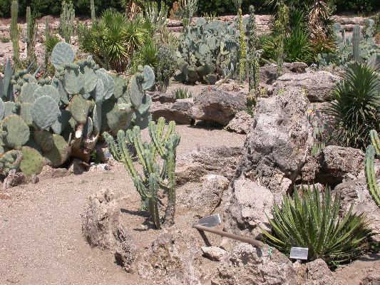 The collection is partly cultivated in pots, that is, the plants are placed outdoors in the summer, burying the pots on the ground, and are recovered in the greenhouse in autumn and winter. Among the collection we find species of African origin (Aloe L., Euphorbia L., Kalanchoe Adans., Crassula L., etc.) and of American origin (Ferocactus Britton & Rose, Mammillaria Haw., Astrophytum Lem., etc.). The other part of the collection is permanently cultivated in the open field, without any shelter from adverse climatic conditions, and can be visited all year round. With these plants it was possible to reconstruct their "natural" environment and experiment on their ability to acclimatize to the local climate.