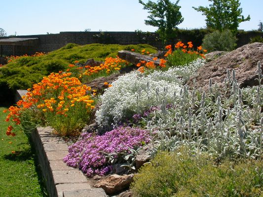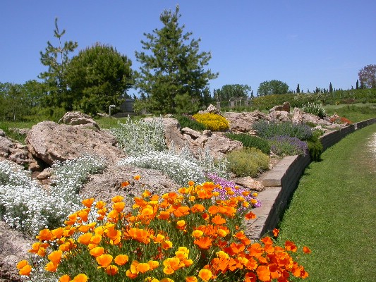 In prossimità della strada è stato realizzato, con grandi massi e pietre calcaree, un giardino roccioso, in cui vengono coltivate piante annuali e perenni dalle intense fioriture, appartenenti ai generi Cerastium L., Saponaria (Ser.) Link, Alyssum Desv., Iberis Desv., Sedum L., Oenothera L., Linum L., Nepeta L., Aster L., Senecio L. e altri, tra cui Stachys byzantina K. Koch, Eschscholzia californica, Cham., Iberis sempervirens L.