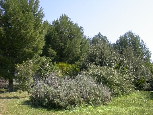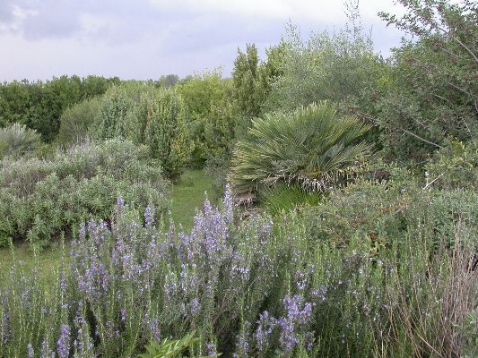 This Mediterranean maquis has been reproduced on a gentle slope, as if from the interior it degraded towards the sea. It mainly hosts sclerophyllous species (i.e. evergreen trees and shrubs that have the ability to cope with summer aridity) with a compact foliage and small, tough, stiff and leathery leaves. It includes many common species of the Italian coasts, such as Arbutus unedo L. (strawberry), Myrtus communis L. (myrtle), Pistacia lentiscus L. (mastic), Smilax aspera L. (rough bindweed ) and, first of all, Quercus ilex L. (holm oak), a species characteristic of our coastal flora.