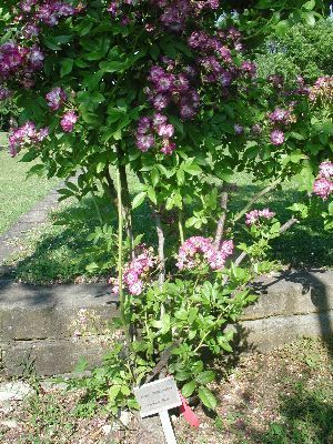 La specie, a crescita sarmentosa, è molto vigorosa e presente nell'Orto Botanico tra quelle che abbelliscono il tunnel delle Rose. Ha fioritura breve, solitamente a maggio, e produce abbondanti fiori piccoli e profumati, semidoppi, di color lavanda-porpora con macchie bianche al centro. A maturità i fiori assumono un colore lilla-bluastro per il quale è spesso chiamata 'The Blue Rose'.