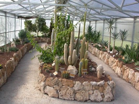 A rich collection of succulent plants ("cactus") is present and is divided into several sections according to the type of management and placement: The Patriarchs’ Greenhouse, the Astolfi Greenhousewith specimens grown steadily in the greenhouse, the Desert, and the Rocky ridge.