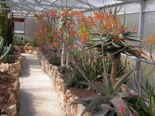 Among the species present there is a collection of Aeonium L. from the Botanical Garden of Essen (Germany), numerous species of Aloe L., several species of Euphorbia L., the genera Haworthia Duval, Gasteria Duval, Crassula L., and Kalanchoe Adans, and some succulents from Madagascar.