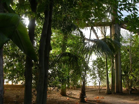 It houses a collection of plants coming mainly from the American and Asian continents to represent shapes and composition of tropical and equatorial environments. Orchids, bromeliads, cicadaceae, ferns, palms and ficus can be admired. Here we can also find some specimens of Nephentes L., a carnivorous plant that evolved structures in the shape of a calyx in order to capture insects (ascids).