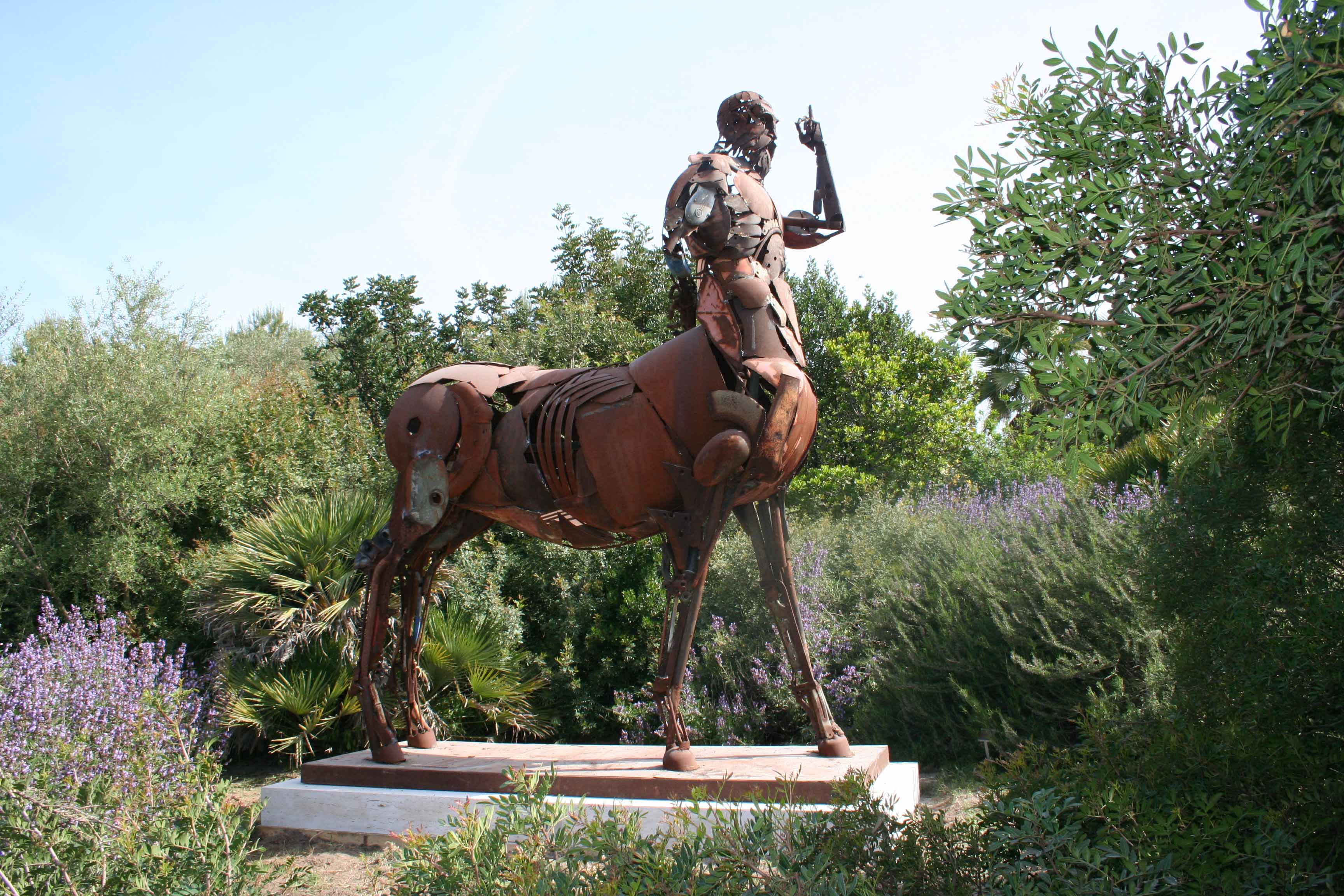 The Chiron, by Patrick Alò, is a large iron centaur, realized with an artistic operation aimed at the recovery of disused industrial raw material, in contrast with the subject of sculpture which instead refers to classical antiquity.